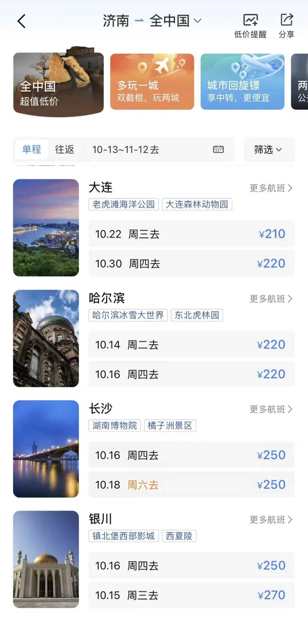 飞济南单程价格跌至200元