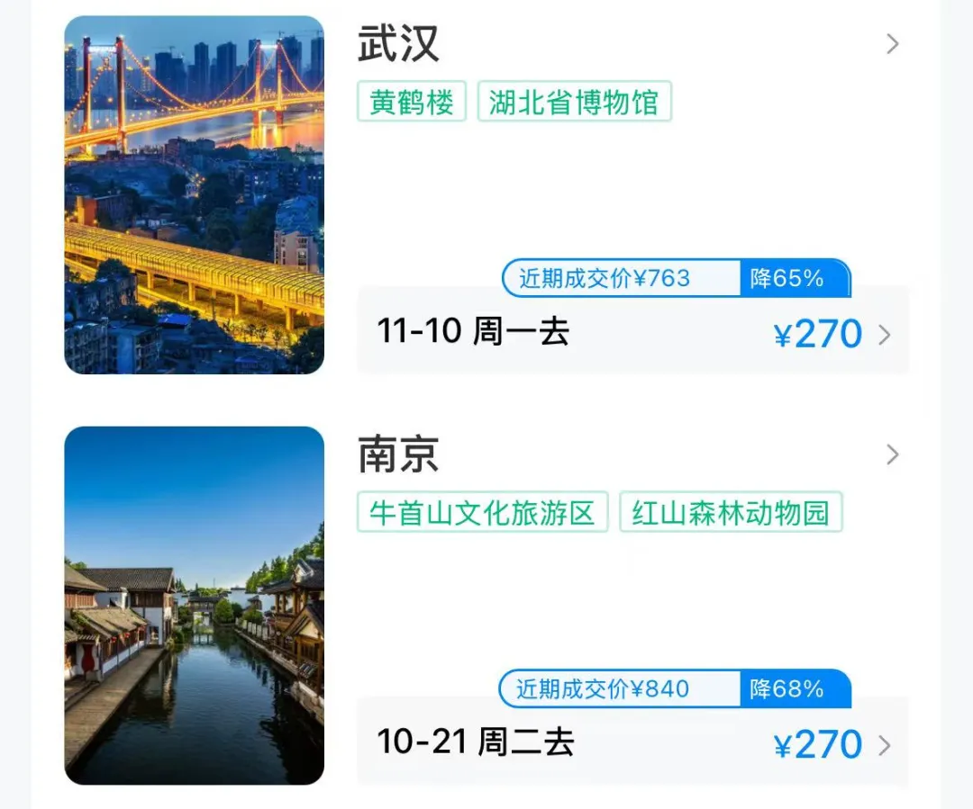 这些热门旅游地区的最低票价