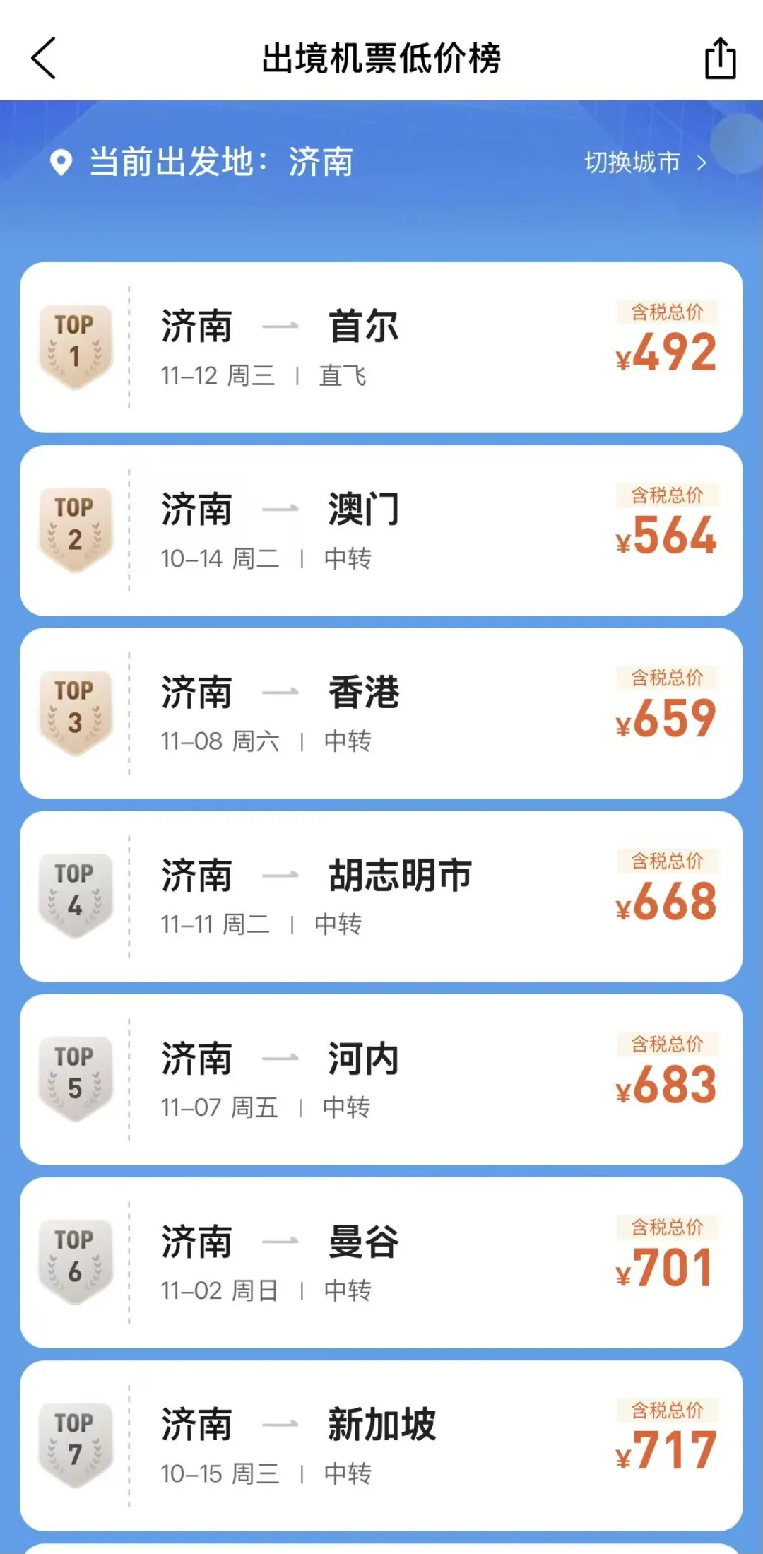 从上海出发的机票价格